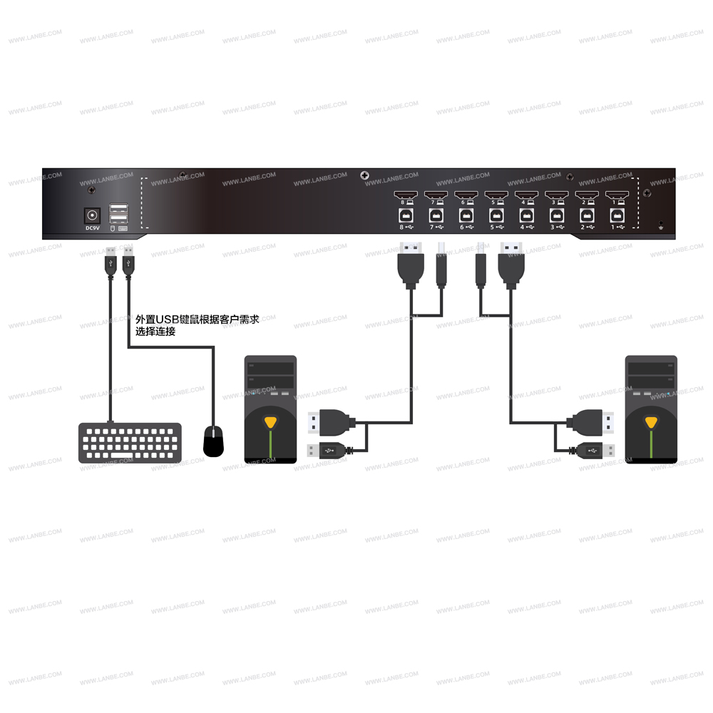 一组USB控制端可管理8台HDMI接口电脑