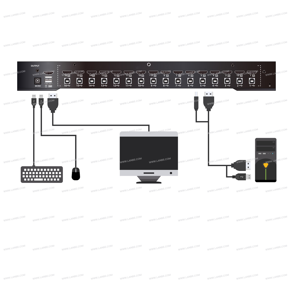 16端口HDMI机架式KVM多电脑切换器是一台可允许管理人员从一组USB键盘、鼠标或者一组PS2键盘、鼠标及控制端访问16HDMI电脑的多功能设备。