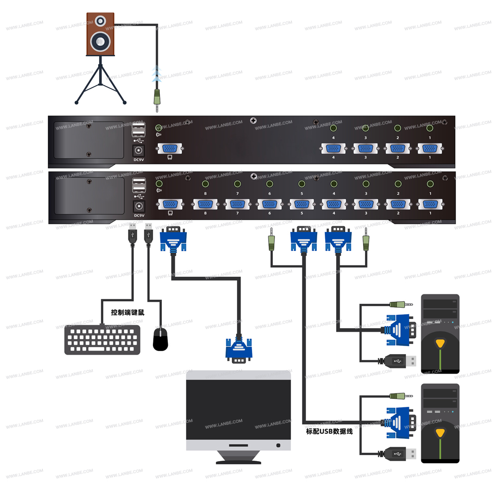 ◆一组USB控制端可管理4台VGA接口电脑