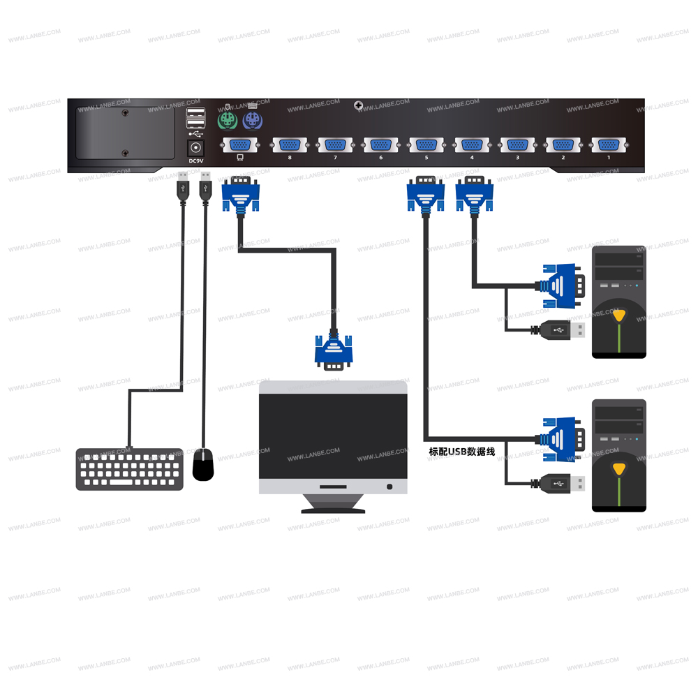 ◆一组USB控制端可管理8台VGA接口电脑